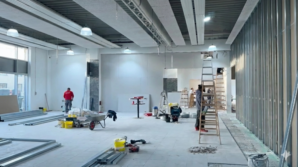 - New office complex (250 m²) with modern workstations, meeting rooms and common areas.